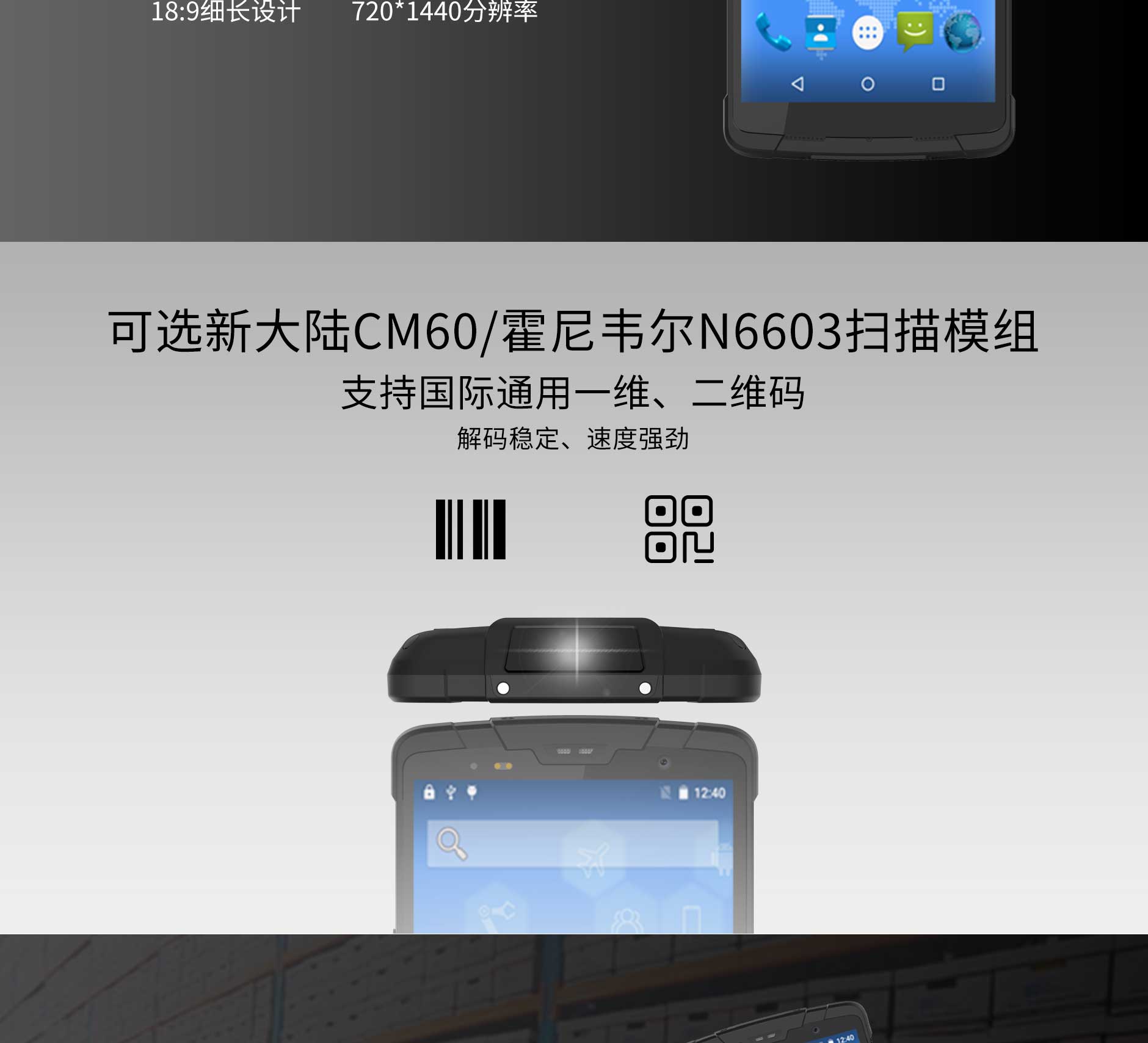 思必拓SD55零售/物流/倉儲專用手持終端是專業級單兵手持終端,搭載八核2.0GHz高性能CPU,突破性Android8.1系統運行保障,數據運行無憂;5.5寸IPS高清全面屏設計,外觀時尚;PC+TPU包膠弧度設計,極度舒適握感。