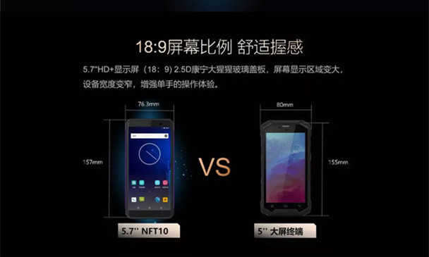 NFT10工業級pda數據采集器具有兩個版本,一個版本配備4核處理器另一款高配配備八核2.0GHz主頻CPU,3G+32G/4G+64G內存,性能更加強大;4800mAH大電池,長續航,(2D識讀頭每6秒掃碼1次上傳1次,可連續工作13小時以上) Type-C接口,9V極速快充,充滿電只需2個小時;具備IP67的防護等級與1.2米跌落高度;支持指紋識別,標配NFC,支持身份證識讀,安可靠;