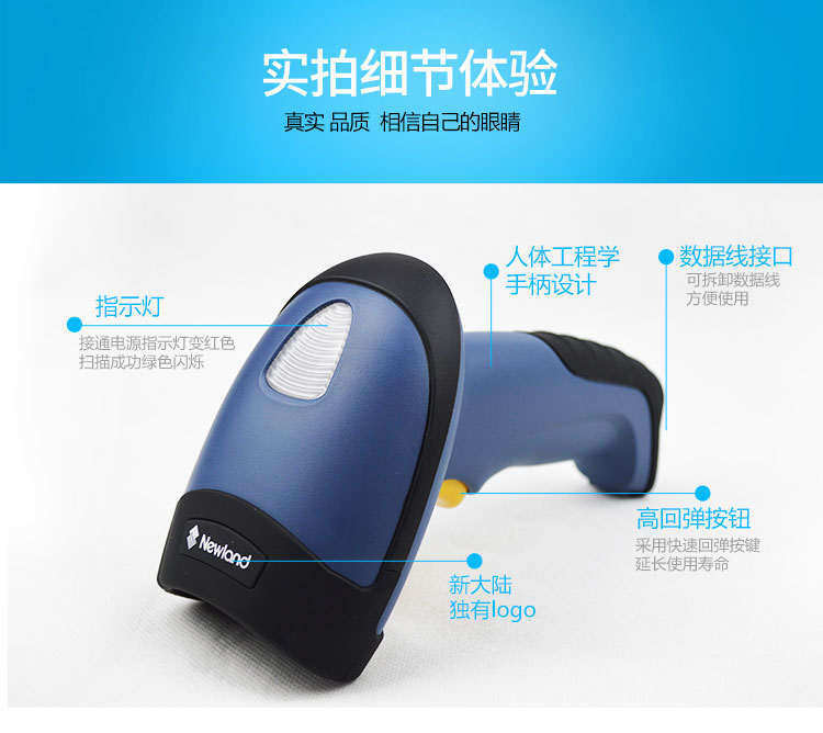 ◆ 尺寸小巧,人體力學(xué)設(shè)計,操作方便尺寸小巧,舒適的人體力學(xué)設(shè)計減輕了用戶的疲勞程度,操作舒適安全,可全天使用,適用于高強度掃描的應(yīng)用。可根據(jù)主機要求隨意調(diào)整條碼數(shù)據(jù)輸出格式,具備菜單式掃描功能,按下掃描鍵條碼數(shù)據(jù)能直接上傳至主機系統(tǒng),無需額外操作。